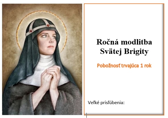 Svätá Brigita dlho prosila Pána, aby jej oznámil, koľko úderov obdŕžal v čase svojho bolestného utrpenie. Jedného dňa sa jej Spasiteľ zjavil a povedal: „Na moje telo sa znieslo 5480 úderov. Ak mi za ne chceš prejaviť zvláštnu úctu, tak sa pomodli každý deň po dobu jedného roka pätnásťkrát Otče náš a pätnásť krát Zdravas Mária. K tomu pridaj aj modlitby ktoré ťa naučím. Po uplynutí roka si tak uctíš každú ranu z týchto 5480 úderov.“ Potom jej spasiteľ povedal: „Kto vykoná túto ročnú pobožnosť, zachráni pätnásť duši svojich príbuzných z očistca, pätnásť duší s jeho príbuzenstva získa dar vytrvať v posväcujúcej milosti a pätnásť hriešnikov obráti ku kajúcemu životu. Samotná osoba, ktorá sa tieto modlitby pomodlí, obsiahne prvý stupeň dokonalosti. Pätnásť dni pred smrťou jej podám svoje prečisté telo, aby bola zachránená od večného hladu a svoju prečistú krv, aby som jej dušu zachránil od večného smädu. Pred smrťou ju navštívim so svojou milovanou matkou a dovediem ju, obohatenú milosťami, do večnej radosti. Tu dostane dar zvláštneho poznania mojej Božskosti, neznámi tým, ktorí tieto modlitby nevykonajú. Ak niekto, hoci aj tridsať rokov žil v smrteľnom hriechu, zbožne vykoná túto pobožnosť alebo si ju zaumieni vykonať, budú mu odpustené hriechy, božia moc ho ochráni pred zlými pokušeniami a pred večným zatratením. A všetko, o čo bude prosiť Boha alebo Najvätejšiu Pannu Máriu, mu Božie milosrdenstvo dopraje. Kto bude učiť tieto modlitby aj iných, toho radosť a zásluhy pretrvajú naveky! Na mieste, kde sa tieto modlitby modlia, je prítomný Pán Boh so svojou milosťou.“ Všetky uvedené výhody sľúbil svätej Brigite sám ukrižovaný Božský Spasiteľ. Kríž, pred ktorým sa to stalo, sa ešte i dnes nachádza v Chráme svätého Pavla v Ríme a teší sa neobyčajnej úcte. Ak je to len trocha možné, nemá sa táto pobožnosť vynechať ani jediný deň. Ak však vážne prekážky znemožňujú tieto modlitby vykonať, dotyčný nestratí milosti spojené s touto pobožnosťou, ak sa v danom roku pomodlí vynechané modlitby dodatočne.