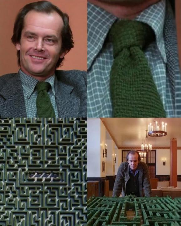Ako trefne poznamenala filmová teoretička Julie Kerns, „Jack je v labyrinte už dávno predtým, než doň skutočne vstúpi.“ Vzor kravaty odzrkadľuje nielen vonkajší, fyzický labyrint, ale aj ten vnútorný — spletité chodby vedomia, samoty, posadnutých myšlienok a násilia, z ktorých Jack nedokáže uniknúť.