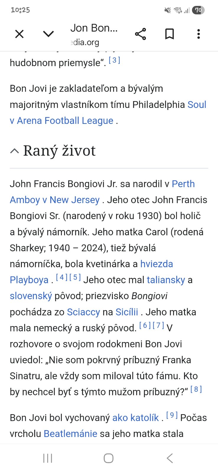 To znamená, že John Bon Jovi má čiastočne aj slovenských predkov z matkinej vetvy rodiny, popri talianskom a nemeckom pôvode.