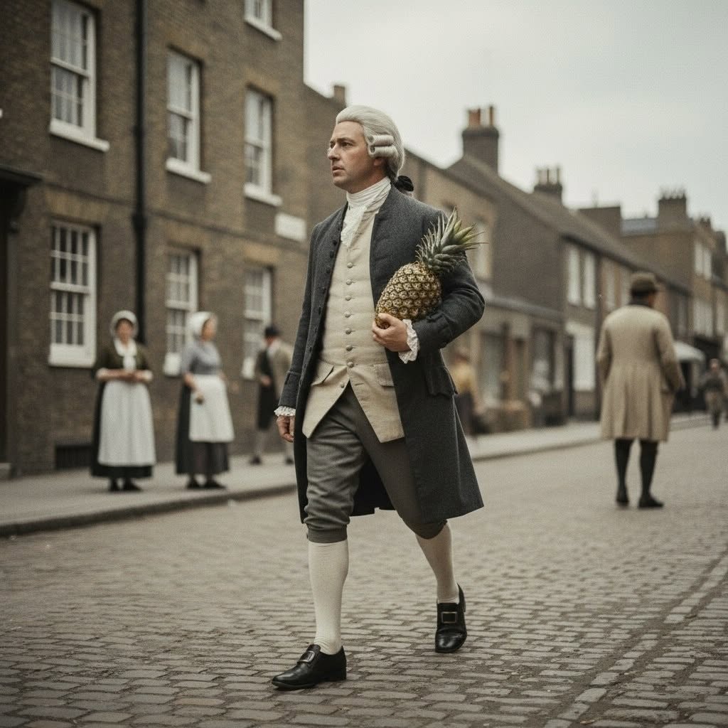 Ananás sa kládol do stredu stola ako hlavná ozdoba hostiny. Nosil sa na recepcie a bály, aby demonštroval spoločenské postavenie. Zjesť ho sa považovalo za barbarstvo — asi ako keby ste dnes roztrhali dizajnérsku kabelku len kvôli pozornosti (hoci sociálne siete už videli aj horšie).