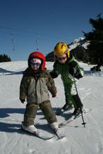 na foto aj s 3,5 rocnou sestrou Linduskou, moji krasni lyziari... nebola som s nimi, no tortu som urobila potajomky doma, zabalila, aby mali oslavu ako ma byt... aj s babkou a dedkom...