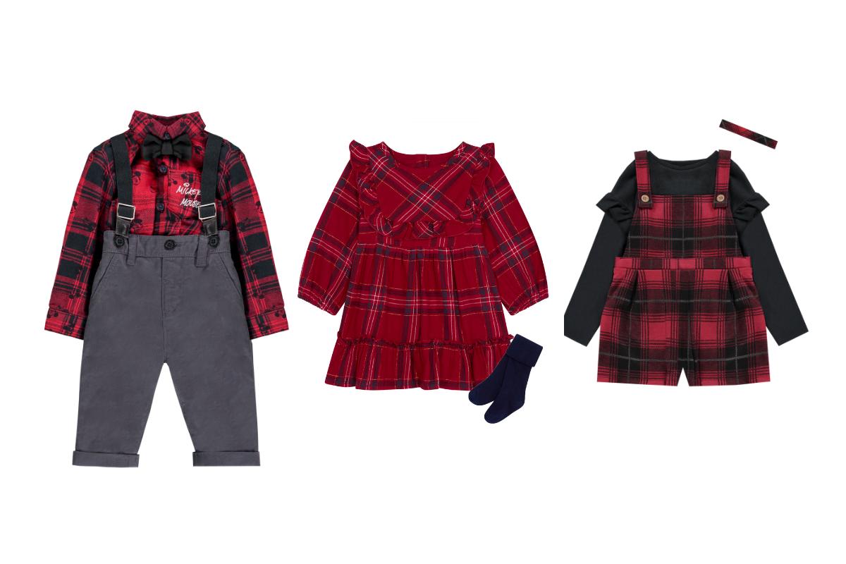 Károvaný vzor je jednoducho nesmrteľný a čoraz viac sa objavuje aj v móde pre najmenších. V tohtoročnej kolekcii objavíte sviatočný chlapčenský komplet, ktorý sa skladá zo sivých nohavíc s trakmi a červenej košele s potlačou Mickey Mouse. Pre malé dievčatká môžete zvoliť napríklad volánové šaty s pribalenými nadkolienkami alebo kárované traky spolu s tričkom, ktoré má jemné volánové riasenie na ramenách. Ku trakovému kompletu prislúcha aj čelenka pre malé parádnice.