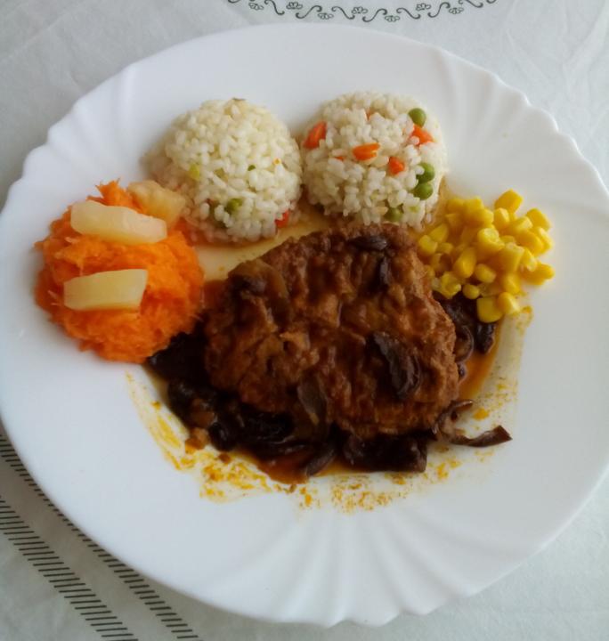 Obed z jedného plechu - pečené kuracie krídelká, bravčové mäsko, slanina, klobása, cibuľa, párky, zemiaky, zeleninka🙂