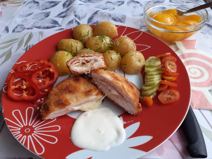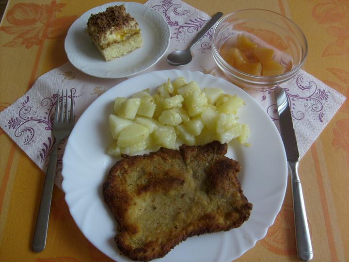 Vyprážaná bedľa, zemiaky varené v šupke s maslom