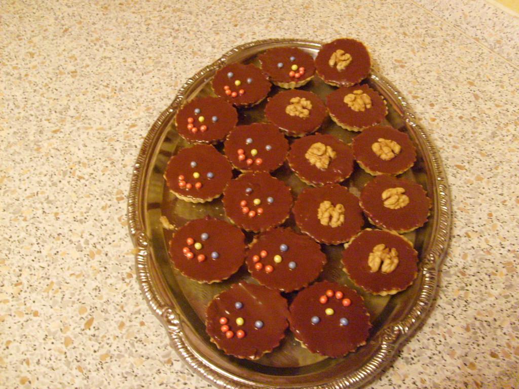 cesto : 50dkg polohrubá múka, 25dkg margarín, 1vajce, 1vanilkový cukor, 13dkg práškový cukor. Všetko spolu zhnetieme, dáme do formičiek a upečieme na 180 do svetla. Vychladnuté plníme.