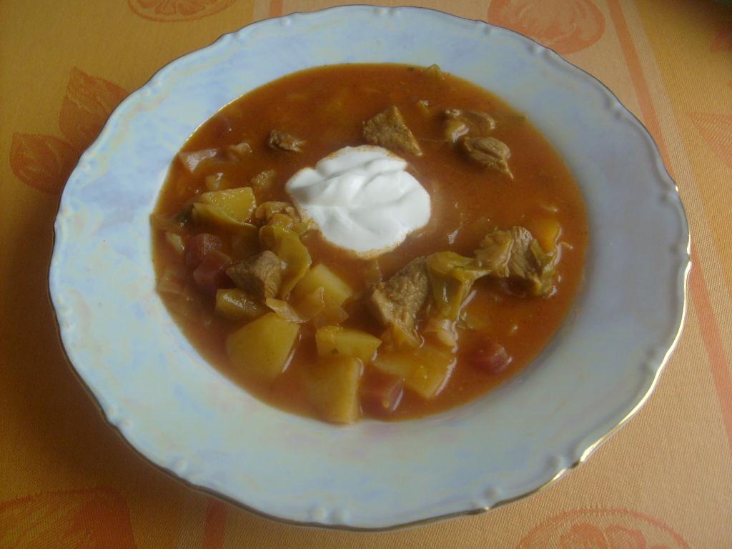 autor@kamila84 zjednodušila som si z viacerých receptov a varím to zhruba takto : v tlakovom hrnci (kuchte) popražím cibuľu, pridám bravčové mäso, nechám zatiahnuť, pridám mletú červenú papriku, mletú rascu, vegetu, čierne korenie, paradajkový pretlak 1 veľký, zalejeme vodou, nechám variť 30 minút. Potom pridám nadrobno nakrájanú sladkú zelenú kapustu, 3dcl fľašku zaváranej cvikly na kocky bez nálevu (kupujem v coop jednota), zemiaky na kocky, mrkvu na kolieska, varím v kuchte ešte dalších cca 15 minút. Ak treba hotový boršč ešte zahustím zátrepkou (voda+múka) a nechám prevrieť. Na tanieri si každý pridá kyslú pochúťkovú smotanu.