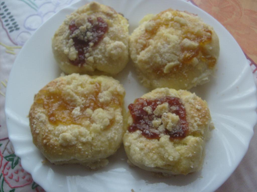 klasické kysnuté cesto : 1/2 kocky čerstvé droždie,2KL kryštálový cukor, voda - urobíme kvások, pridáme 500g hladká múka, 2,5dlc teplého mlieka, 1 KL soli, trochu oleja a poriadne premiesime, po pol hodine vykysnuté cesto rozvaľkáme, pokrájame na štvorce, plníme plnkou, na každú buchtu dáme slivkový lekvár, potrieme rozšľahaným vajíčkom a posypeme mrveničkou. Dáme na plech s papierom na pečenie, pečieme 35-40minút na 180-200.