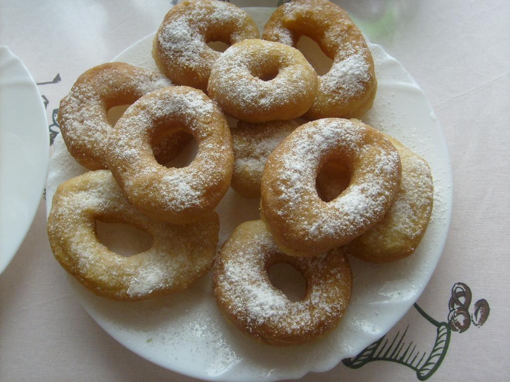 autor@lmalnasiova urobím si kvások z 1/2 kocky droždia, trochu teplej vody, 2KL kryštálového cukru, po vykysnutí pridám 25dkg hladkej múky, 1/2 KL soli, cca 1,5dcl vody, trochu oleja, poriadne premiesim a nechám podkysnúť cca 30 minút. Z cesta robím šišky a vyprážam na vyššej vrstve oleja, tak aby plávali. Horúce obalím v zmesi práškového cukru a vanilky.