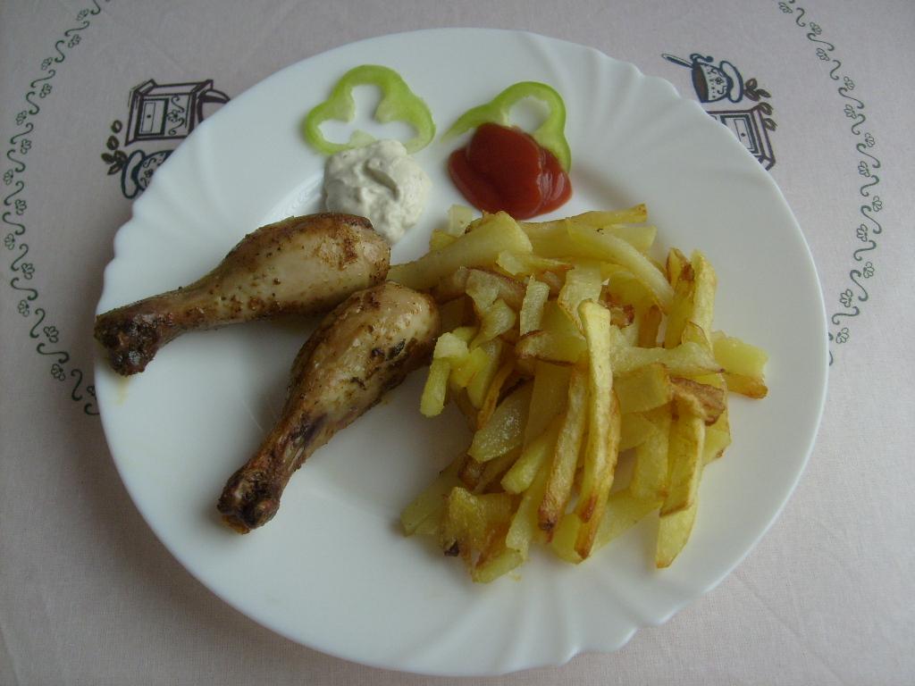 grilované kuracie stehienka,hranolky