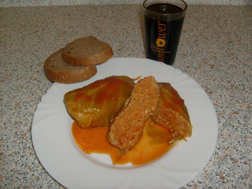 Ja robím z bravčového mäsa (pliecko alebo krkovička) 800g, zomeliem ho na mlynčeku s väčšími dierkami + 1 väčšiu cibuľu + 5 strúčkov cesnaku. Pridám 2 vajcia, 2 PL vegety, čierne korenie podľa chuti, 1 ČL mletej červenej papriky sladkej, 400g prepláchnutej surovej guľatej ryže, 1 malý paradajkový pretlak a 1 cibuľu nadrobno nakrájanú popraženú na oleji. Všetko spolu rukou zmiešam a v prípade potreby ešte dochutím. Vo veľkom hrnci varím hlávku zelenej kapusty v osolenej vode pričom si kapustu narežem v mieste hlúbu na 3 časti (do trojuholníka) aby sa jednotlivé listy dali odoberať. Počas varenia listy odoberám na misu a keď je potrebné ešte ich nechám potom znova už také podelené ešte chvíľu povariť do polomäkka. Záleží od kapusty či je zimná alebo letná, tú stačí kratšie obvárať. Z uvareného kapustného listu jemne zrežem hrubší hlúb a plním zmesou mäsa a ryže. Naukladám do hnca tesne vedľa seba a zalejem vodou v ktorej sa varila kapusta zmiešanou s paradajkovým pretlakom, používam 500g paradajkového pyré v krabičke, ochutnám a prípadne dosolím. Malo by byť zaliate až po vrch. Varím cca 40 minút.