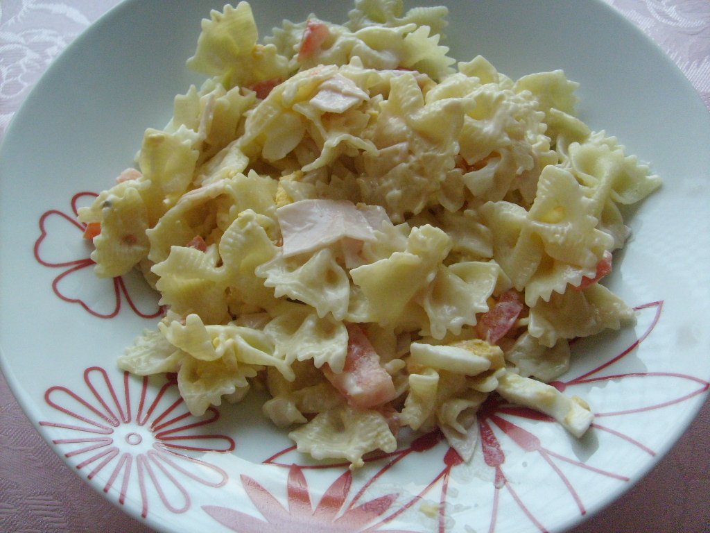 @lulutsija mašličky klasicky uvariť scediť, na horúce dať črievkový syr, paradajky na kocky, vajíčka uvarené natvrdo a šunka na kocky 🙂