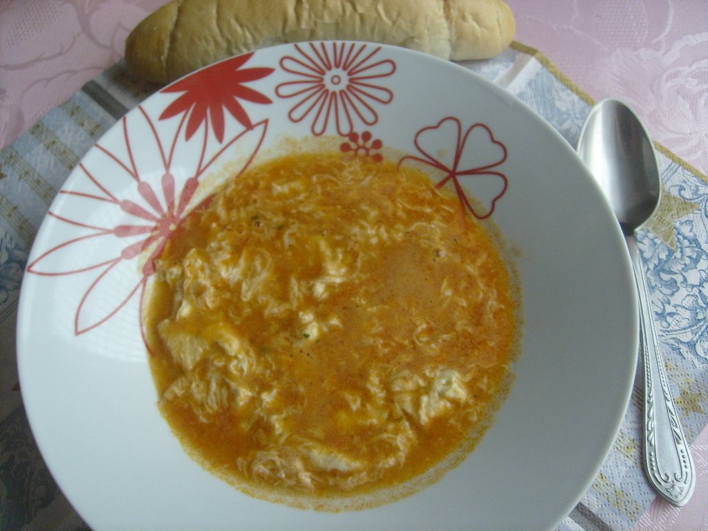 autorrecept : zápražka z masla a múky + mletá červená paprika, zaliať vodou, poriadne rozmiešať, dosoliť, ochutiť mletou rascou a vegetou, nechať prevrieť, stíšiť na malý plyn a malým prúdom vliať 3 rozmiešané vajcia