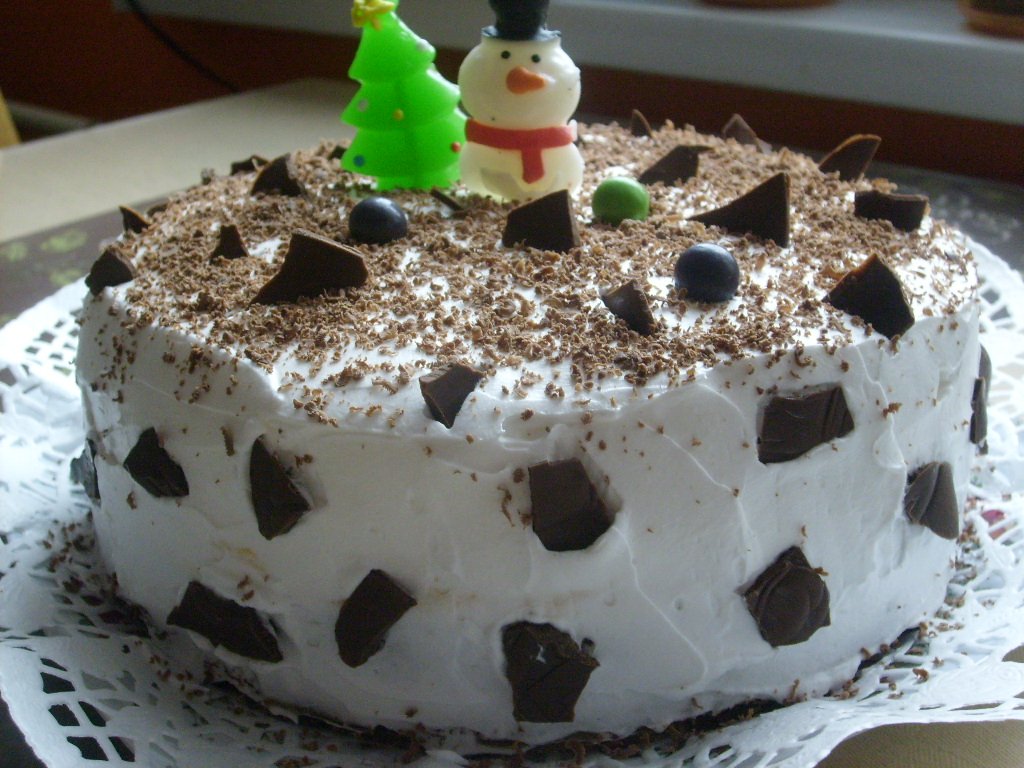 piškóta : okrúhla forma : 4vajcia šľaháme s 20dkg kryštálového cukru do hustej peny, pridáme 1dcl oleja, 1dcl vody, 20dkg hladkej múky zmiešanej s 1 práškom do pečiva, 3PL kakaa a všetko spolu premiešame, pečieme pri 180 asi 25-30minút.