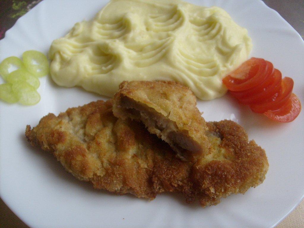bravčový rezeň,zemiaková kaša