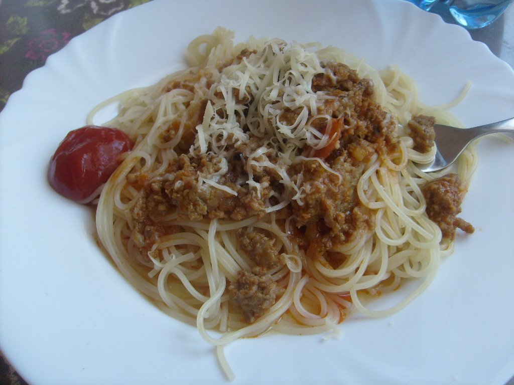 špagety so zvyšným mäskom na prípravu lazaní