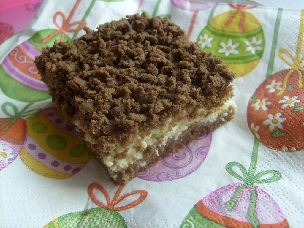 recept : cesto - 400 g hladkej múky, 1 prášok do pečiva, 20 dkg margarín, 4 PL kakaa, 4 PL práškového cukru, 6 PL mlieka, plnka - 1 kg hrudkovitého tvarohu, 4 vajcia, vanilkový cukor, 1PL maizeny alebo zlatý klas, 30 dkg práškový cukor.