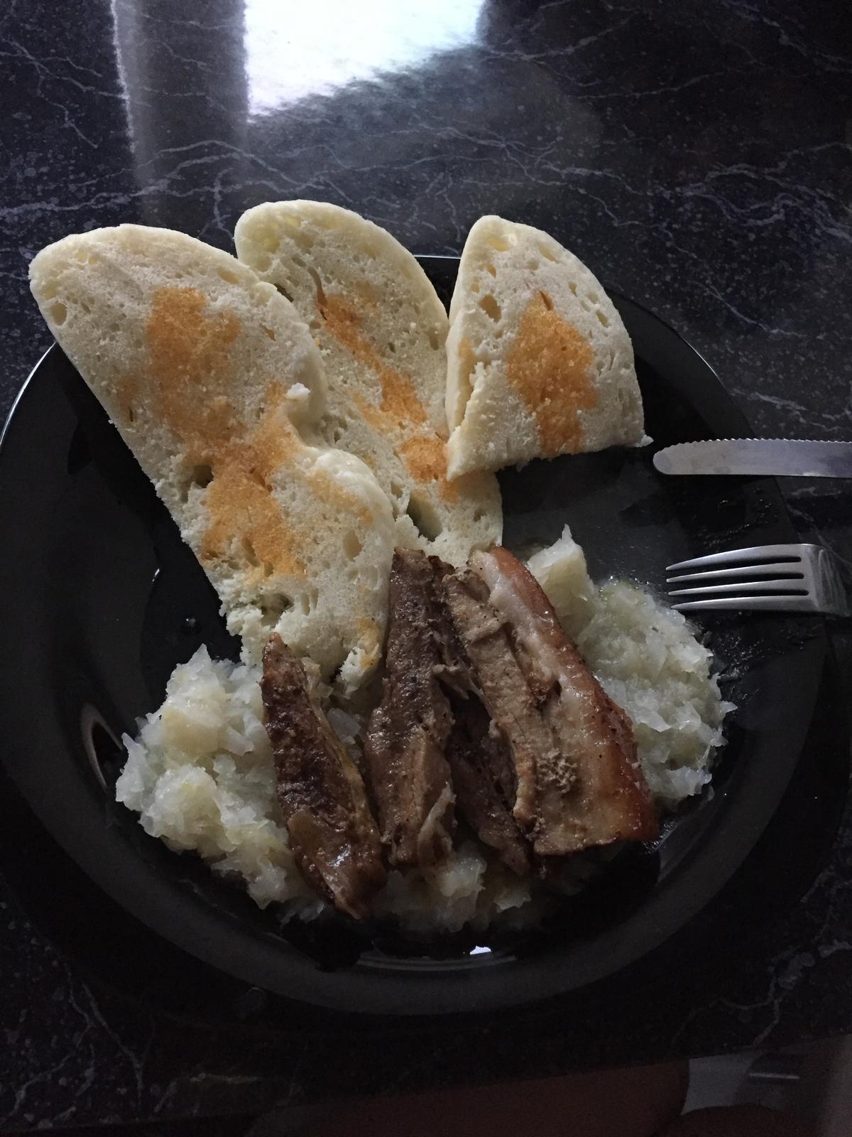 autor@angie240492 Bôčik nákrájam na cca 1cm plátky, okorením ho a posypem grilovacím korením, pečiem na plechu s olejom, nie dlho aby sa nevysušil, treba sledovať, na 200, minimálne 25 minút. Kapustu nakrájam na drobnejšie kúsky, osolím. V hrnci popražím cibuľu na oleji, pridám 2 PL cukru, nechám trochu popražiť na svetlý karamel a pridám kapustu, cca 1,5 dcl vody a dusím do mäkka.