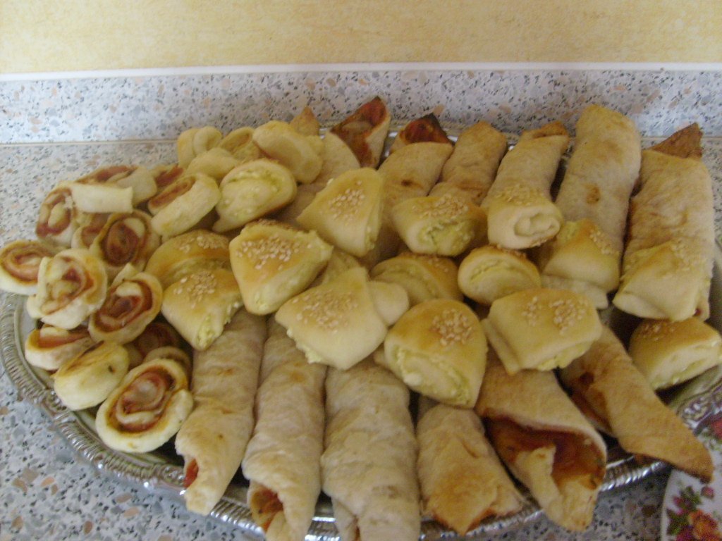 pre návštevu -krstnú dcéru - slané z lístkového cesta, cesnakové trojuholníky