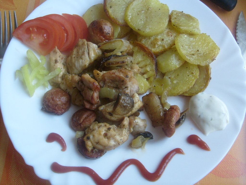 ražniči na plechu + opekané zemiaky