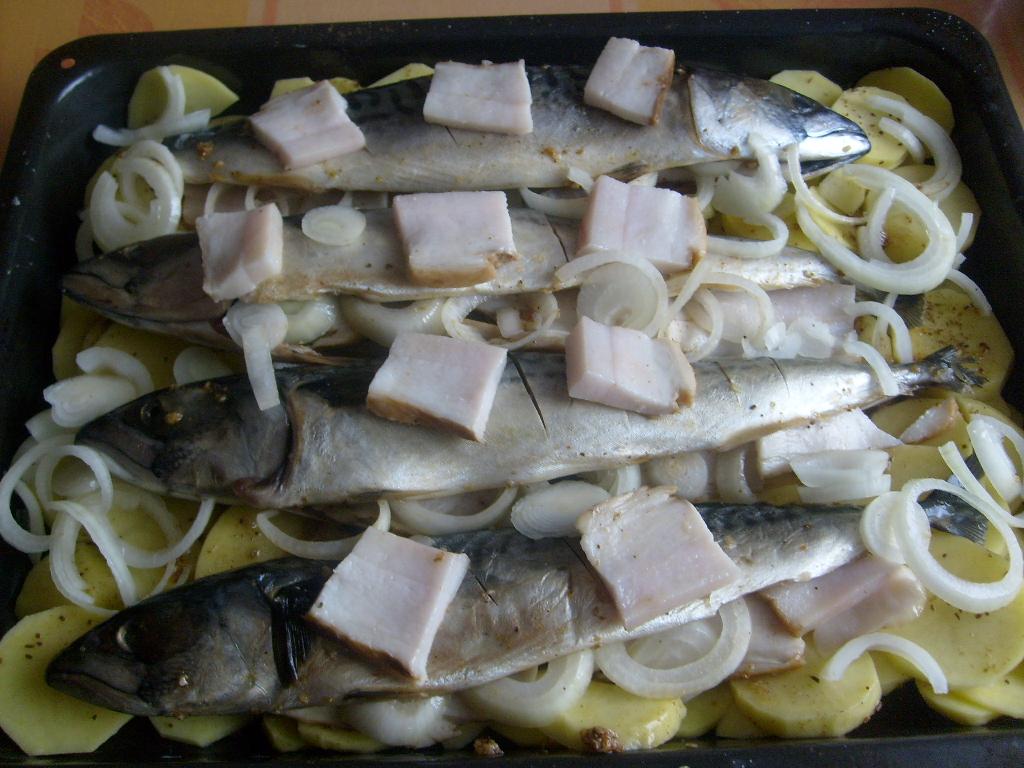 makrela so zemiakmi prichystaná na pečenie