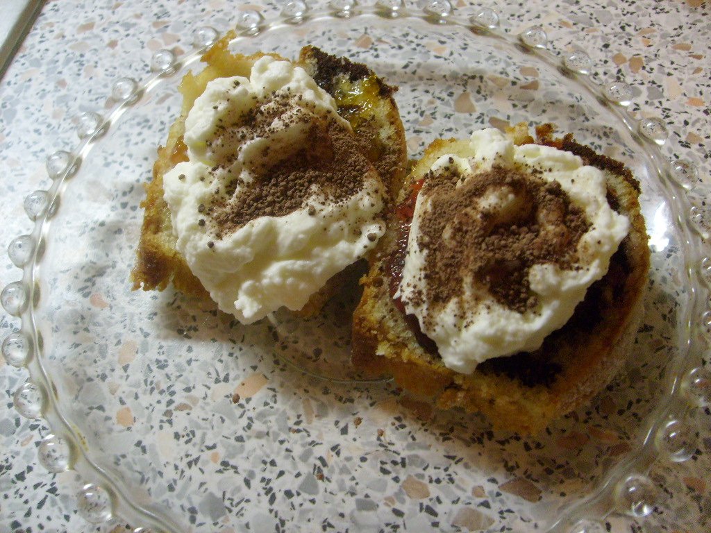 Poleva : 1 bielok, práškový cukor podľa potreby, rumová aróma, potravinárska farba červená - všetko spolu zmiešame vidličkou do hladka.