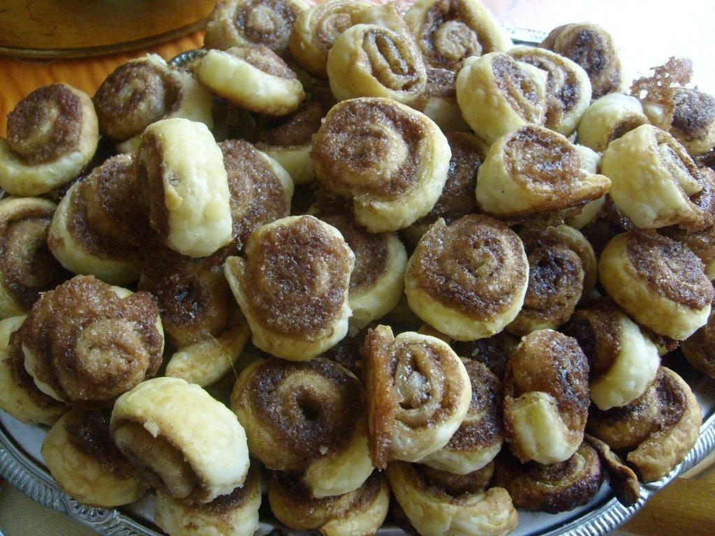 autor@anjetta lístkové cesto 450g rozdelím na 2 polovice, vyvaľkám, bohato pokvapkám rozpusteným margarínom, posypem škoricovým cukrom podľa chuti (asi 7 vrecúšok na 1 plát) a znova pokvapkám margarínom. Stočím ako makovník a pokrájam ostrým nožom na 2 cm široké kúsky. Ukladám opačne na plech vystlaný papierom na pečenie a pečiem na 200 asi 10-12 minút.