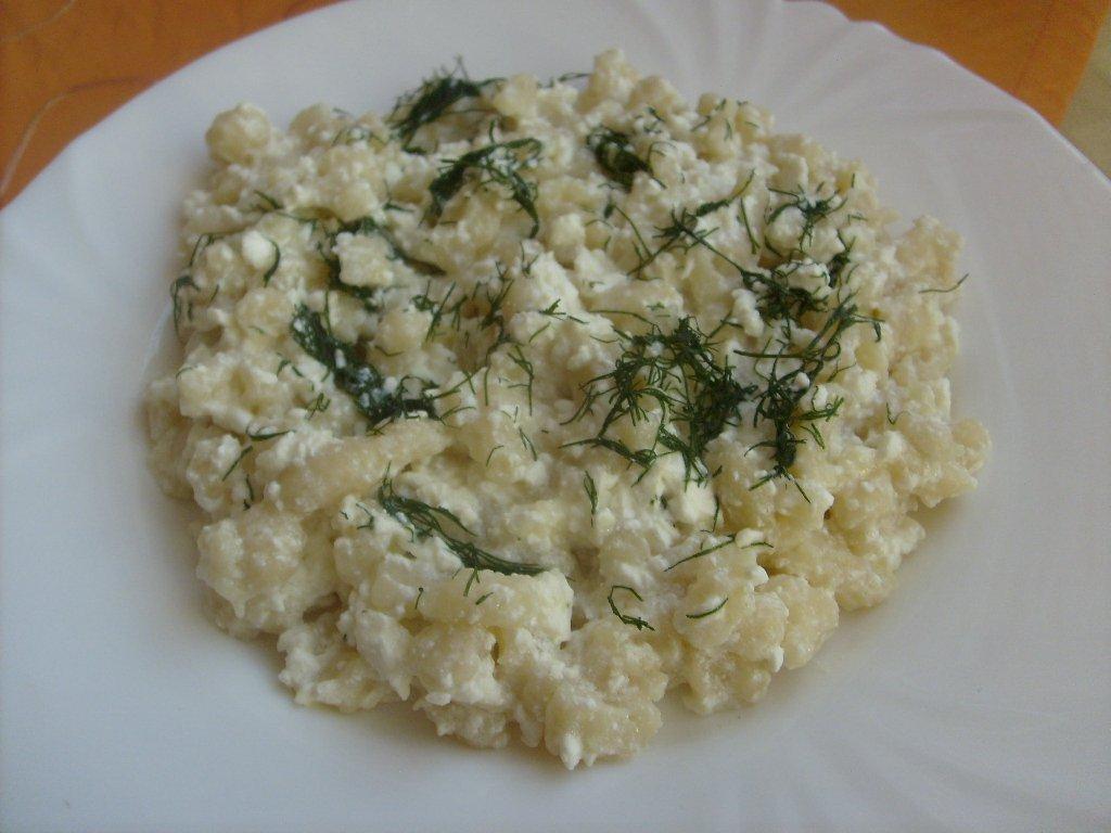 Domáce halušky na slano s tvarohom a kôprom