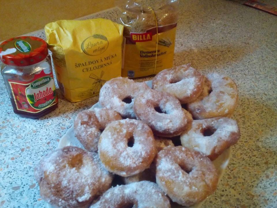 recept : urobím si kvások z 1/2 kocky droždia, trochu teplej vody, 2PL kryštálového (alebo hnedého) cukru, po vykysnutí pridám 25dkg špaldovej celozrnnej múky, 1/2 KL soli, cca 1dclmlieka, trochu oleja, poriadne premiesim a nechám podkysnúť cca 30 minút. Z cesta robím šišky a vyprážam na vyššej vrstve oleja, tak aby plávali. Hotové nechám osušiť na papierovej utierke a obalím v práškovom cukre zmiešanom s vanilkovým cukrom.