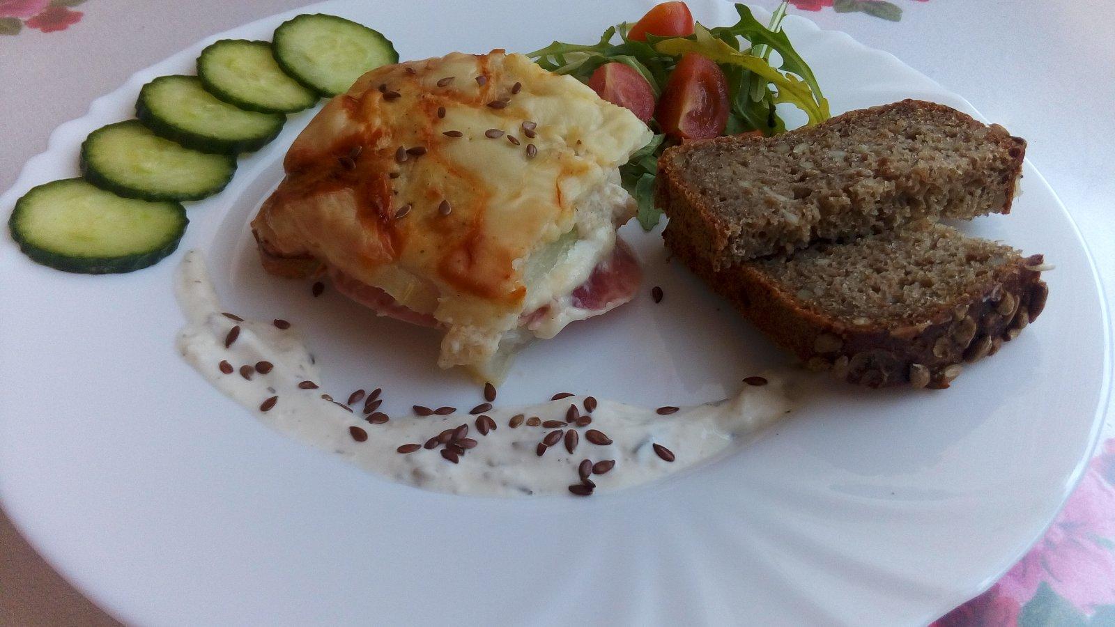 zapekaný kaleráb so šunkou a syrom