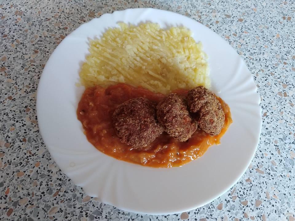 šnicle s podbíjanou kapustou, popučené zemiaky