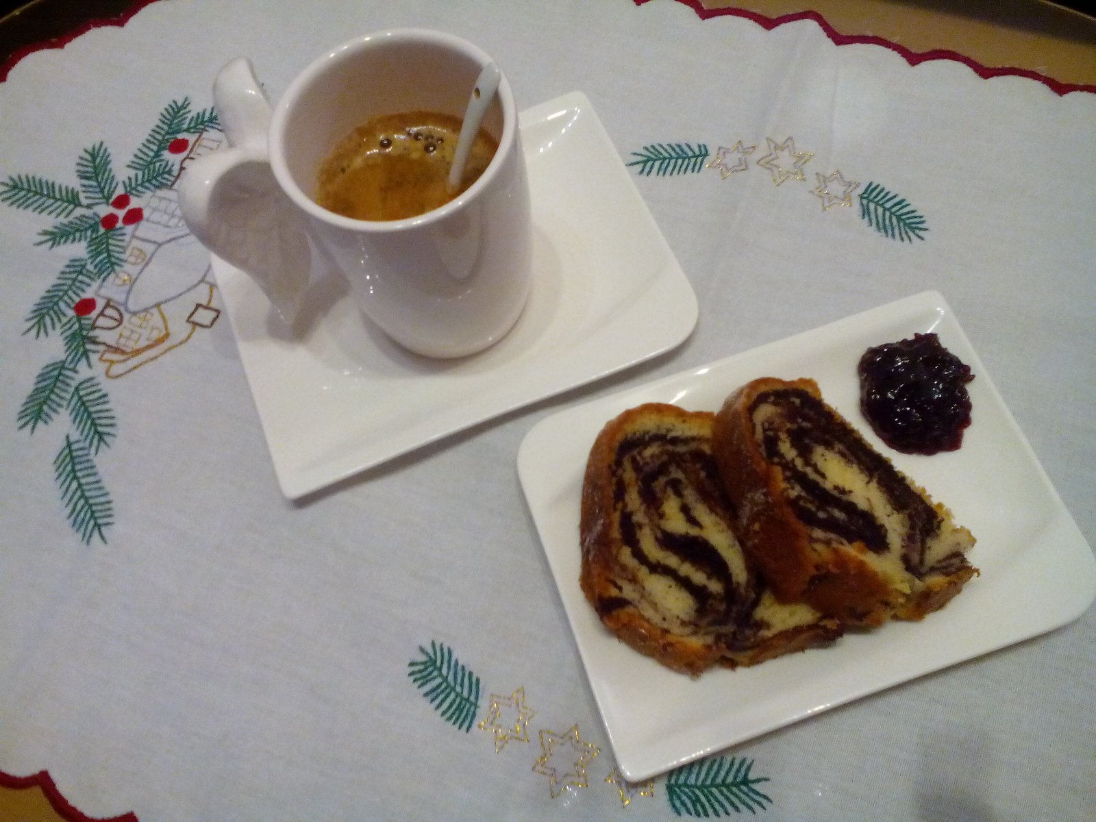 recept : 4 vajcia vyšľahať s 30 dkg práškového cukru na hustú penu, pridať 30 dkg hladkej múky + 1 prášok do pečiva, 2,2 dcl mlieka, 2 dcl oleja, všetko spolu zmiešať. Odobrať asi 1/3 a pridať do nej 2-3 PL kakaa + trochu mlieka, aby bola hustota oboch častí rovnaká (kakao zahustí). Hmotu lejeme striedavo do vymastenej a múkou vysypanej formy a nakoniec párkrát zakrúžime vidličkou vo forme aby vzniklo mramorovanie. Pečieme na 180 asi 45 minút.