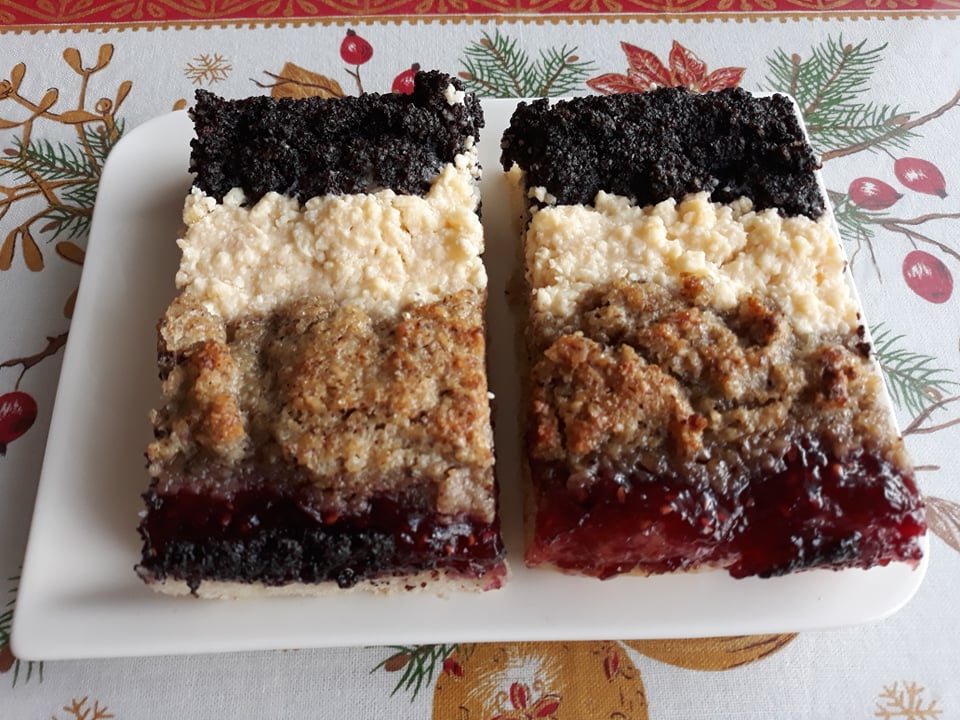 Kysnutý poplanok s orechmi, makom, tvarohom a malinovým lekvárom