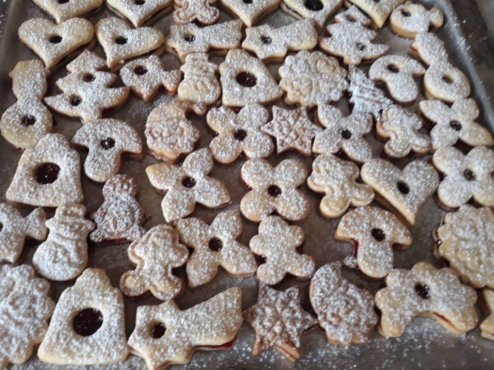 vianočné keksíky (podobné lineckým ale oveľa mäkšie až sa roztápajú v ústach), z tejto dávky vyjde 6 plechov: Do väčšej misy dáme 60dkg hladkej múky špeciál, 20dkg práškového cukru, 30dkg margarínu, 2 žĺtka, 1 prášok do pečenia. Všetko spolu rukou zhnetieme, výborne a ľahko sa spracuje, na múkou posypanej doske rozvaľkáme a vykrajujeme rôzne tvary. Dávame na suchý plech, nemusí byť vystlaný papierom, pečieme krátko do svetla pri 180. Môžme dávať nahusto nenarastú do šírky. Hotové vychladnuté spájame spolu lekvárom alebo plnkou.