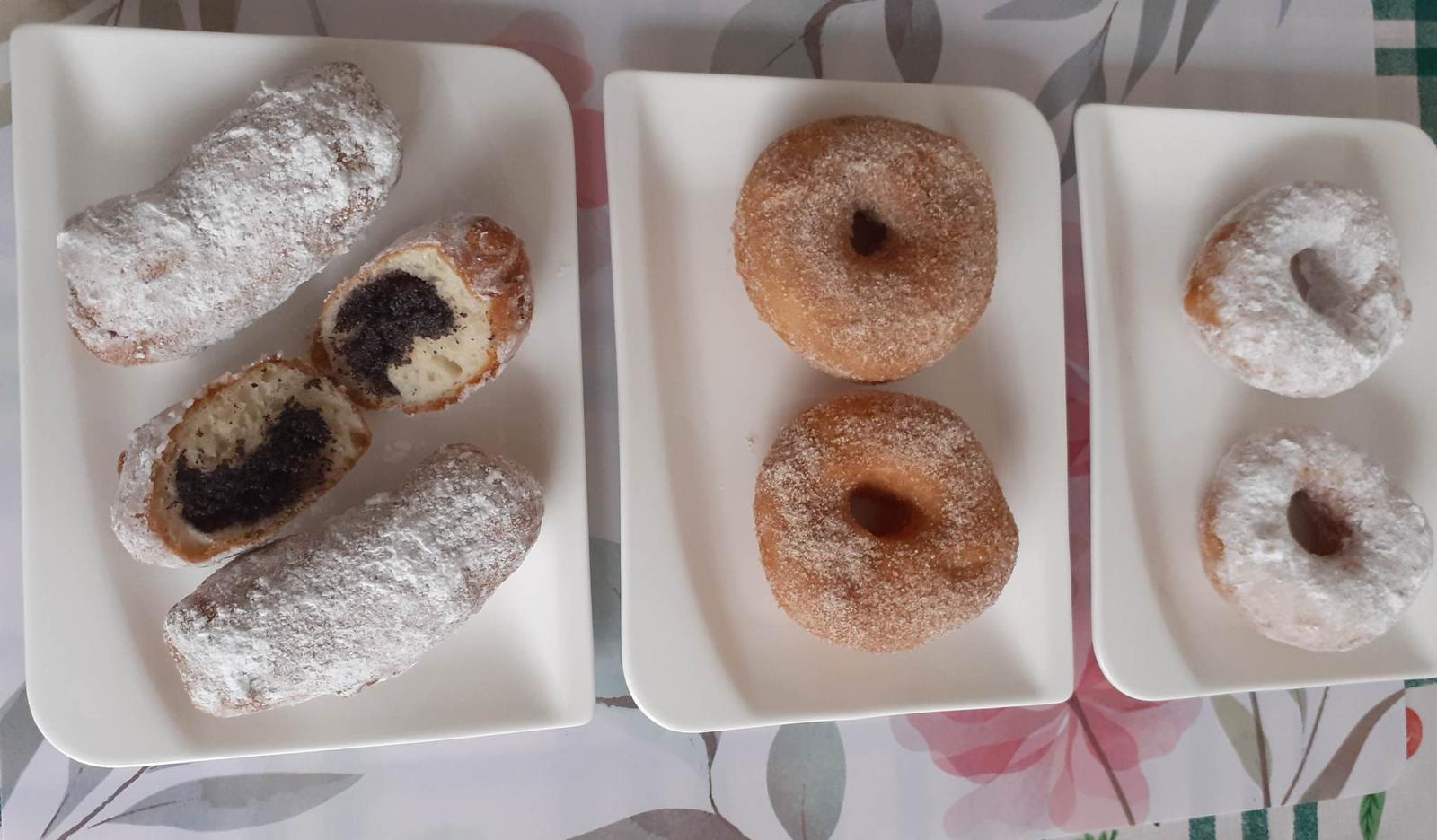 šišky obaľované v práškovom cukre s vanilkou, v škoricovom cukre s vanilkou, pirôžky plnené makom😍