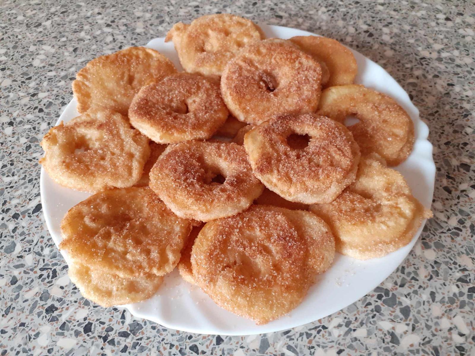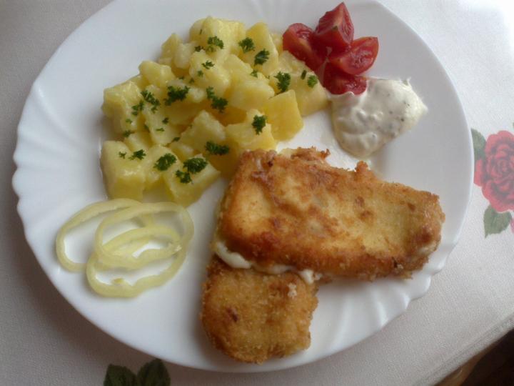 Vyprážaný syr, zemiaky (foto archívna), dezert - jablká v župane