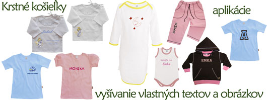 Ponúkame kvalitné slovenské bavlnené výrobky pre kojencov, školákov ale aj dospelých. U nás máte možnosť vyšitia obrázkov, aplikácií a vlastných textov pre spestrenie oblečenia.