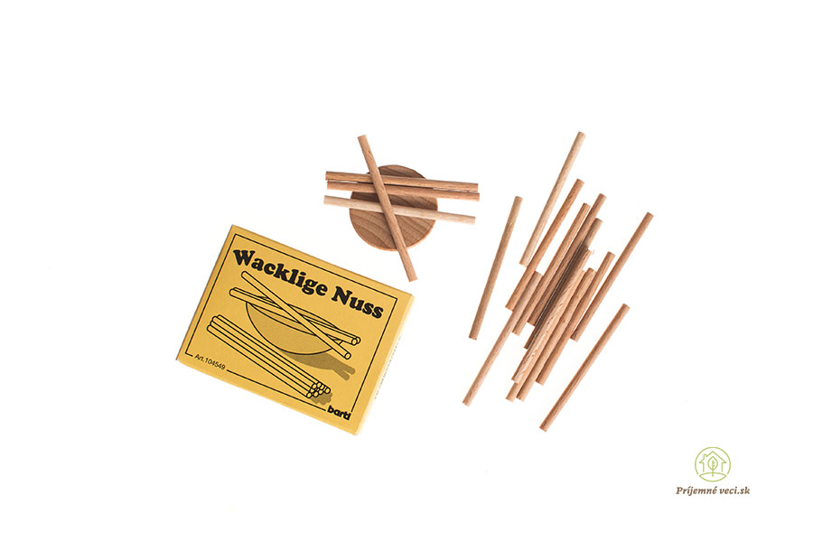 Hry s jednoduchým princípom sú najnákazlivejšie - treba uložiť čo najviac paličiek na polku hojdajúceho sa "orieška". Obsahuje 16ks paličiek.