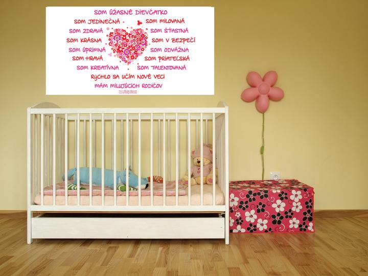 Motivačný plagát pre dievčatko slúži ako pomyselná „kotva“ pre rodičov, aby si v rôznych situáciách uvedomili, aké je práve to ich dieťa úžasné a výnimočné. Odporúčame nalepiť plagát nad postieľku alebo posteľ dievčatka a každý večer dievčatku čítať text plagátu, keď zaspáva. Zvuky, slová, hudba sa dieťatku ukladajú do podvedomej pamäte a ovplyvňujú jeho zdravý mentálny vývoj.