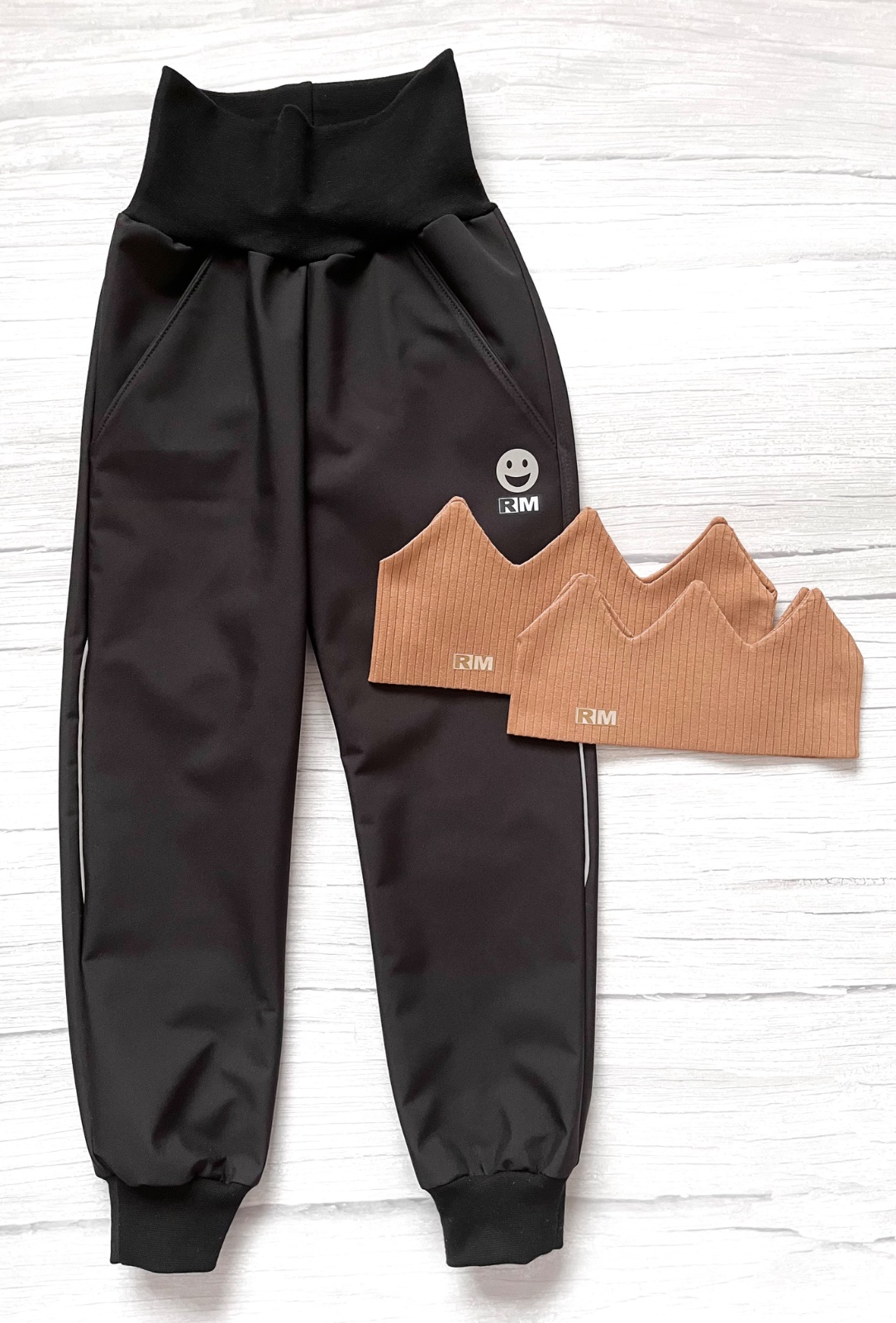 👑🤎👧🖤👦🤎👑 Unisex nohavice z letného softshellu a rebrované korunky pre súrodencov