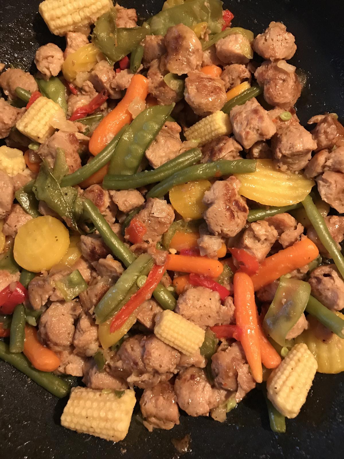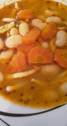 My dnes kuracie rizoto a pre malého vegetariána sójové kocky so zeleninou a fazuľova polievka na sladko s par.pretlakom