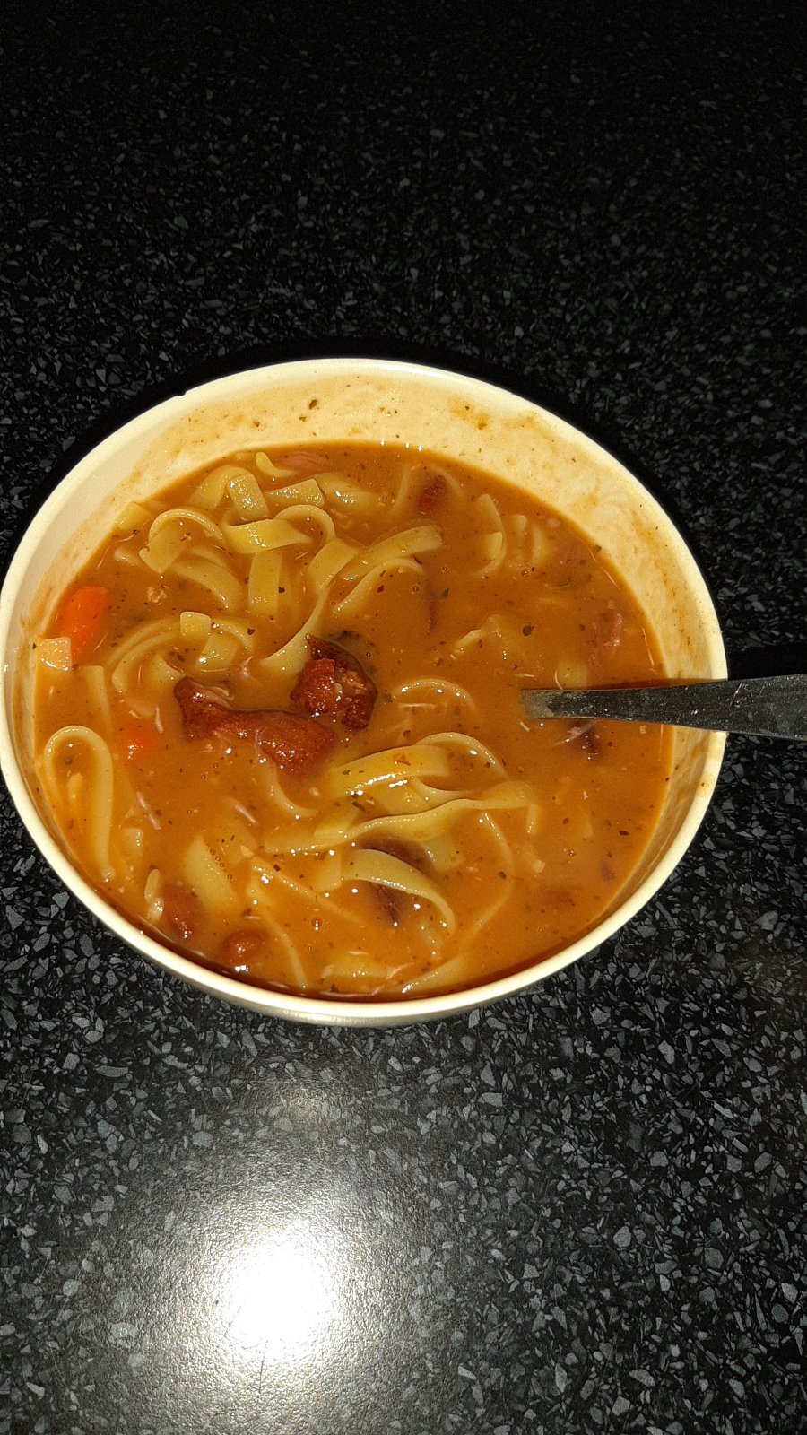 Kelovo - zemiaková polievka a špagety so syrovou omáčkou 😊😊😊.