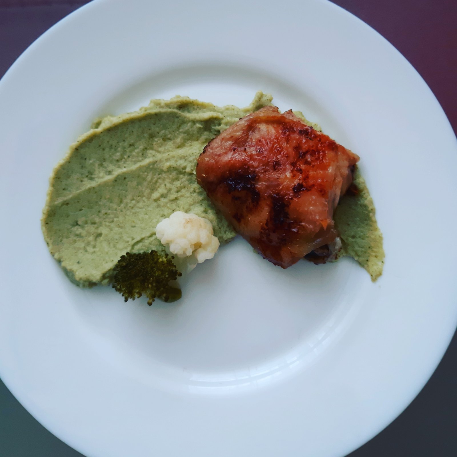 My dnes brokolicovo-karfiolove pyre a medove kuriatko.