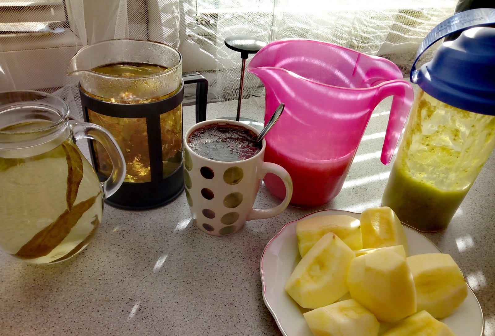Dnešné ránko u nás 🌻➡ káva➡ šalviový čaj➡ lipový čaj➡ ovsena kaša s jablkami➡ špenát s banánom