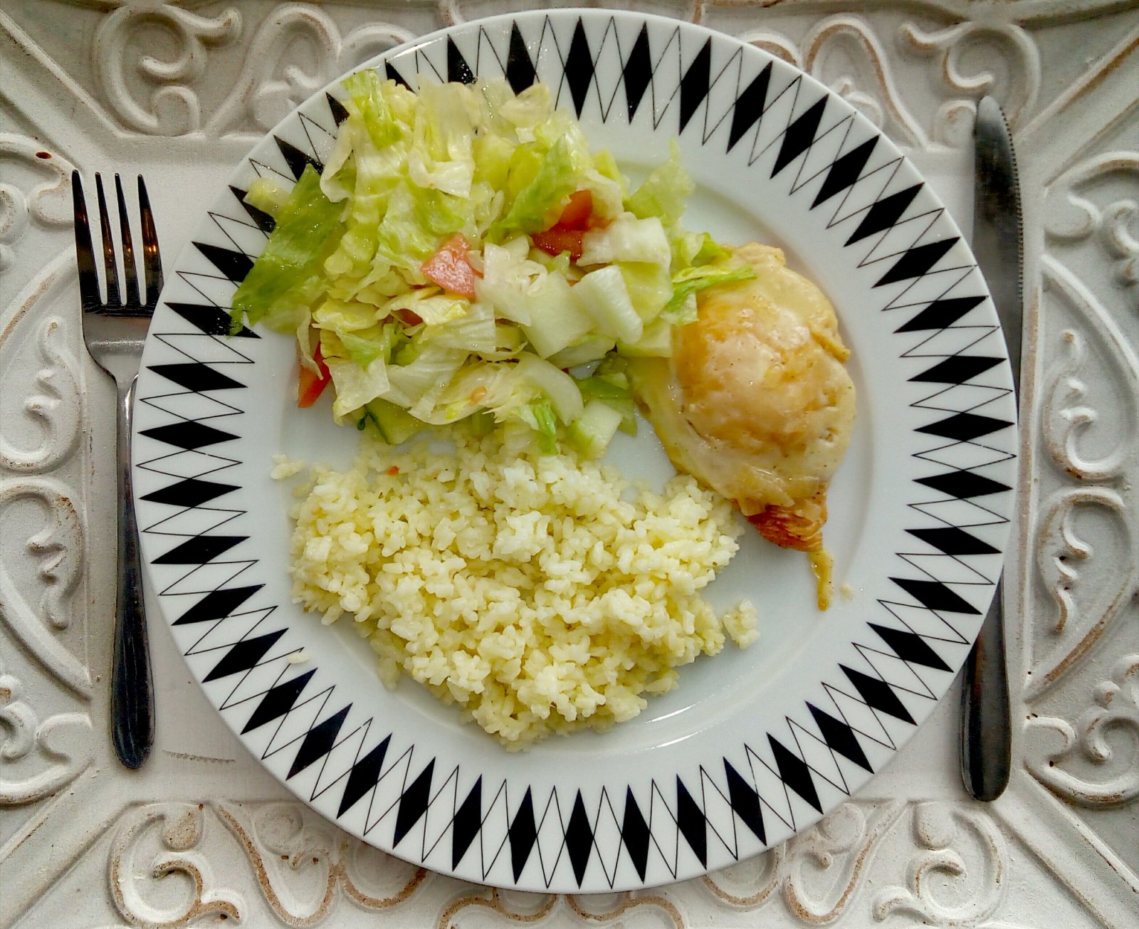 U nás mäsko na "sladko" zapečene kuracie prsia s broskyňou 🍑a syrom 🧀 k tomu zeleninový šalát 🥗 a ryža 🍚 👌 Úžasná kombinácia 🤗