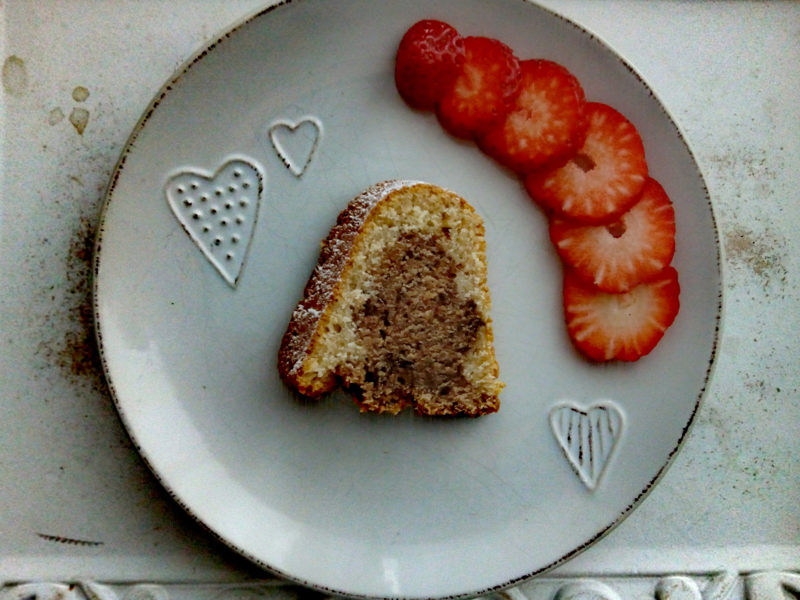 Obyčajná mramorová bábovka, ktorá je vždy zaručene šťavnatá a svieže sladké jahody 🍓☺ aaaaa u nás je nádherne slnečno 🌞, vyzerá to na pekný deň🌻 Krásne doobedie kočky 💛