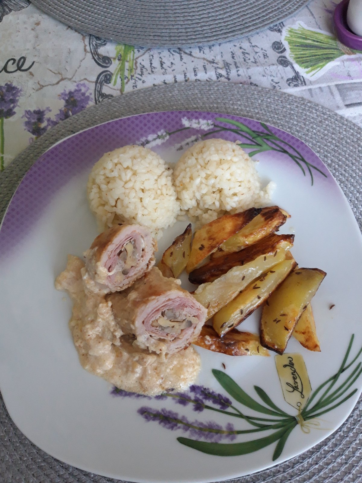 bravčová plnená roláda+zemiaková kaša, a výborný kapustový šalát