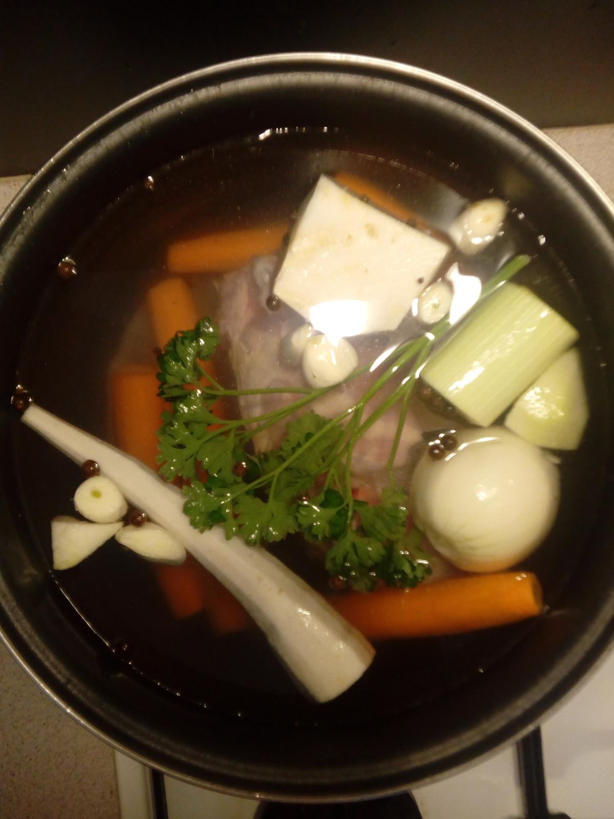 Vsetko varim v kuchte, najprv dam masko podla toho ake cca na 25minut aj s kostami a so vsetkymi koreninami, potom vyberiem maso a dam na cca 8minut zeleninu, prelejem cez sitko, vsetko spojim spolu a uz len dochutim ak je treba a vzdy je vyborna