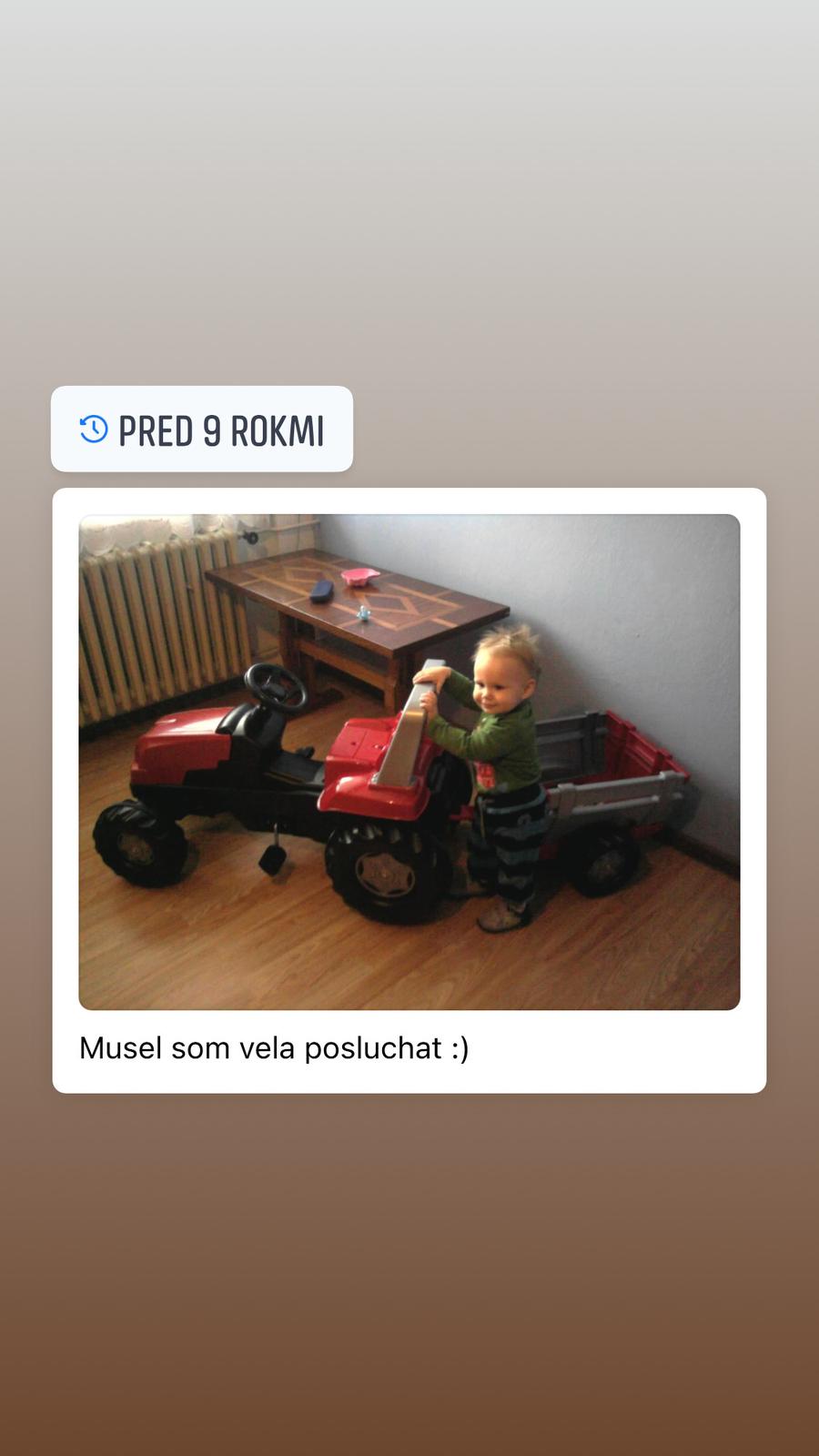 Akurát dnes mi vybehla tato spomienka🙂 už má 10 a doteraz traktor funguje, toľko deti odvozil. Ale značku neviem veru. Ešte aj teraz sa tam vprace😁
