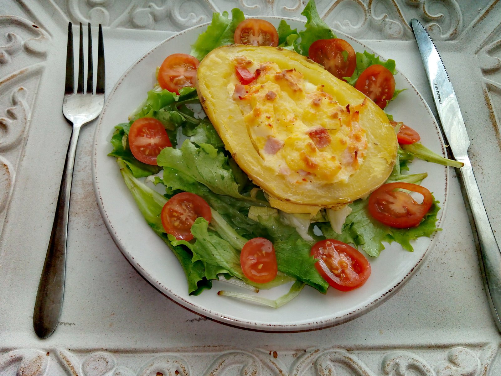 Plnené zemiaky a k tomu BILLA fresh valerian šalát v jemne kyslastej zálievke ✌