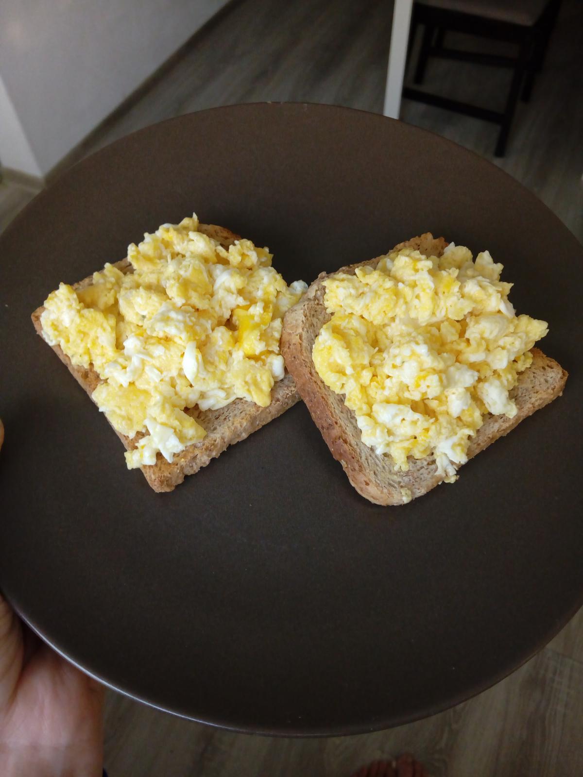 Ránečko kočky ❄🌞 Dnes sa nám zobudil niekto veľmi hladný 👧 a požiadavka bola niečo slané ale bez zeleninky 😱 Ešteže viem, že jej zje relatívne dosť a tak dnes len takto na opečenom touste praženica na masle 👌👍 Obľubujú vaše deti zeleninku? ❤ k vám poletia